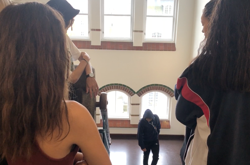 Kameraet viser personer eller ting set fra oven.