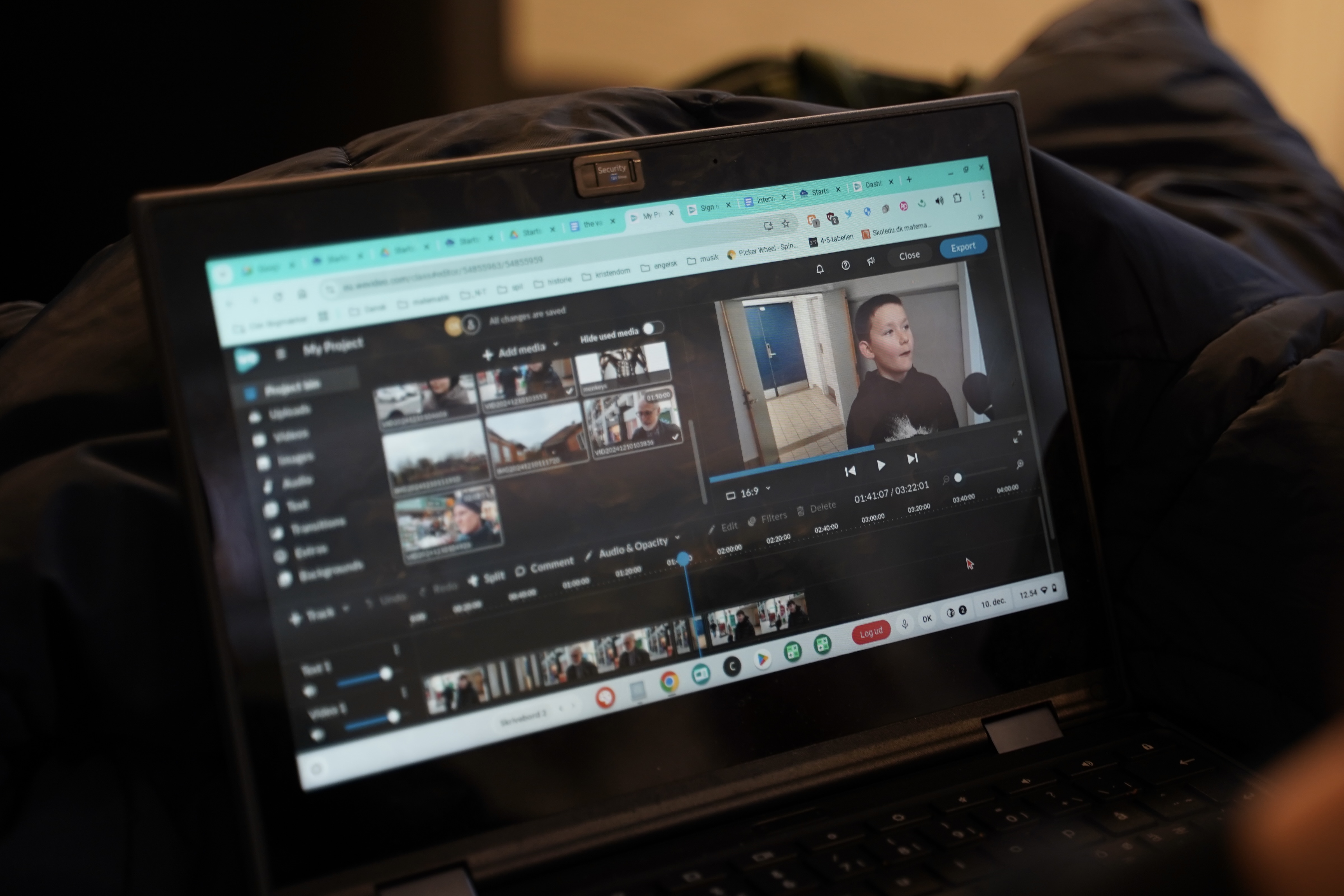 c. Når I har klippet interviews sammen, skal I justere klippene