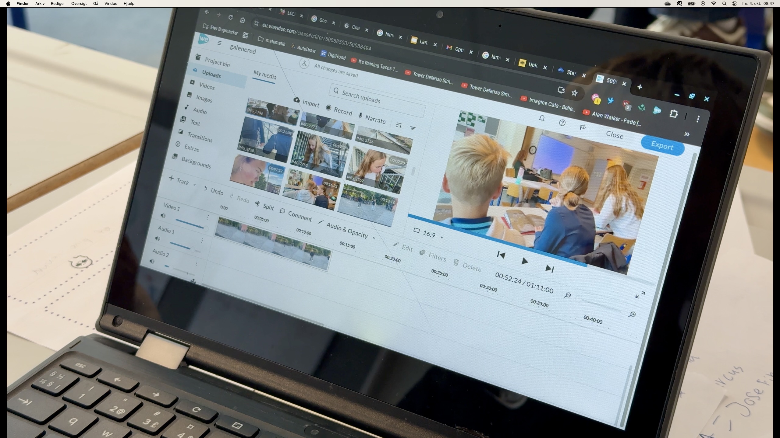 Hvis I skal bruge andre klip, end dem I har optaget, kan I finde masser af videomateriale i Wevideo på Skoletube. Tænk dog over, at de fleste klip er fra USA, hvor skolerne er anderledes end i Danmark